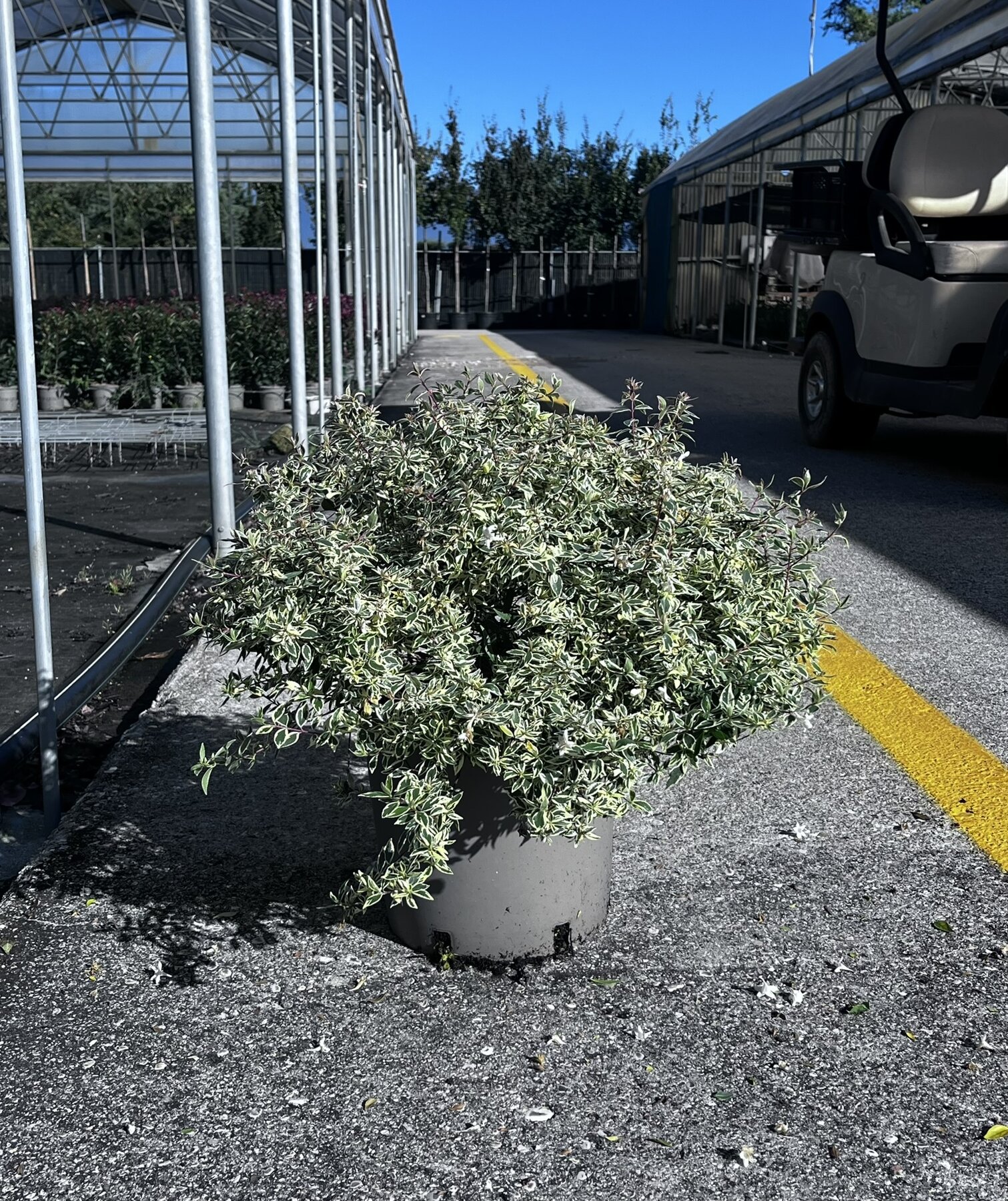 Arbusto sempreverde appartenente alla famiglia delle Caprifoliaceae. Portamento basso e compatto, crescita limitata con uno sviluppo massimo di circa 60 cm di altezza. Presenta uno stupendo fogliame variegato di bianco crema che lo rende particolarmente decorativo. Il fiore è bianco ed il suo periodo di fioritura è Maggio-Ottobre. Ama il terreno acido.