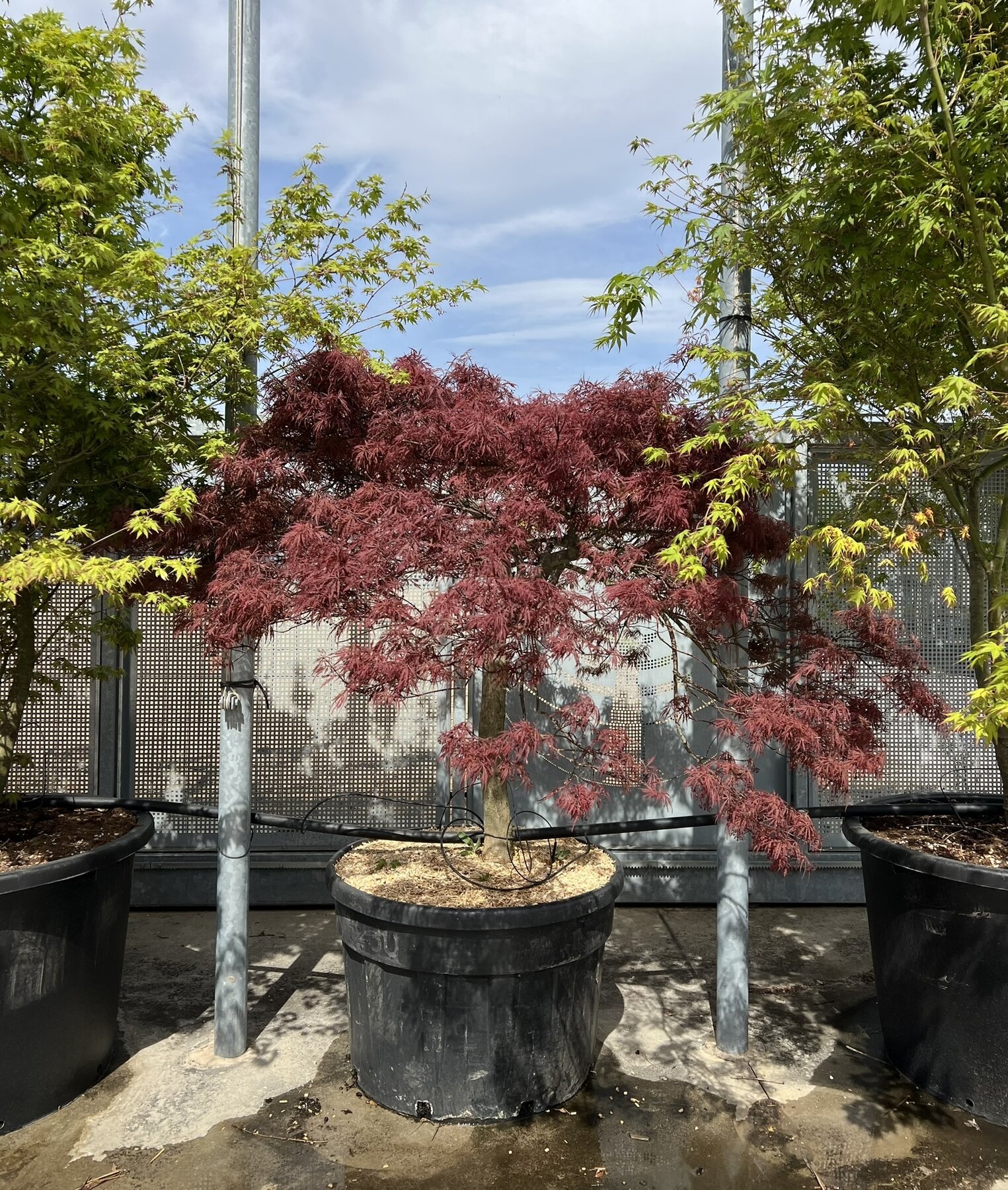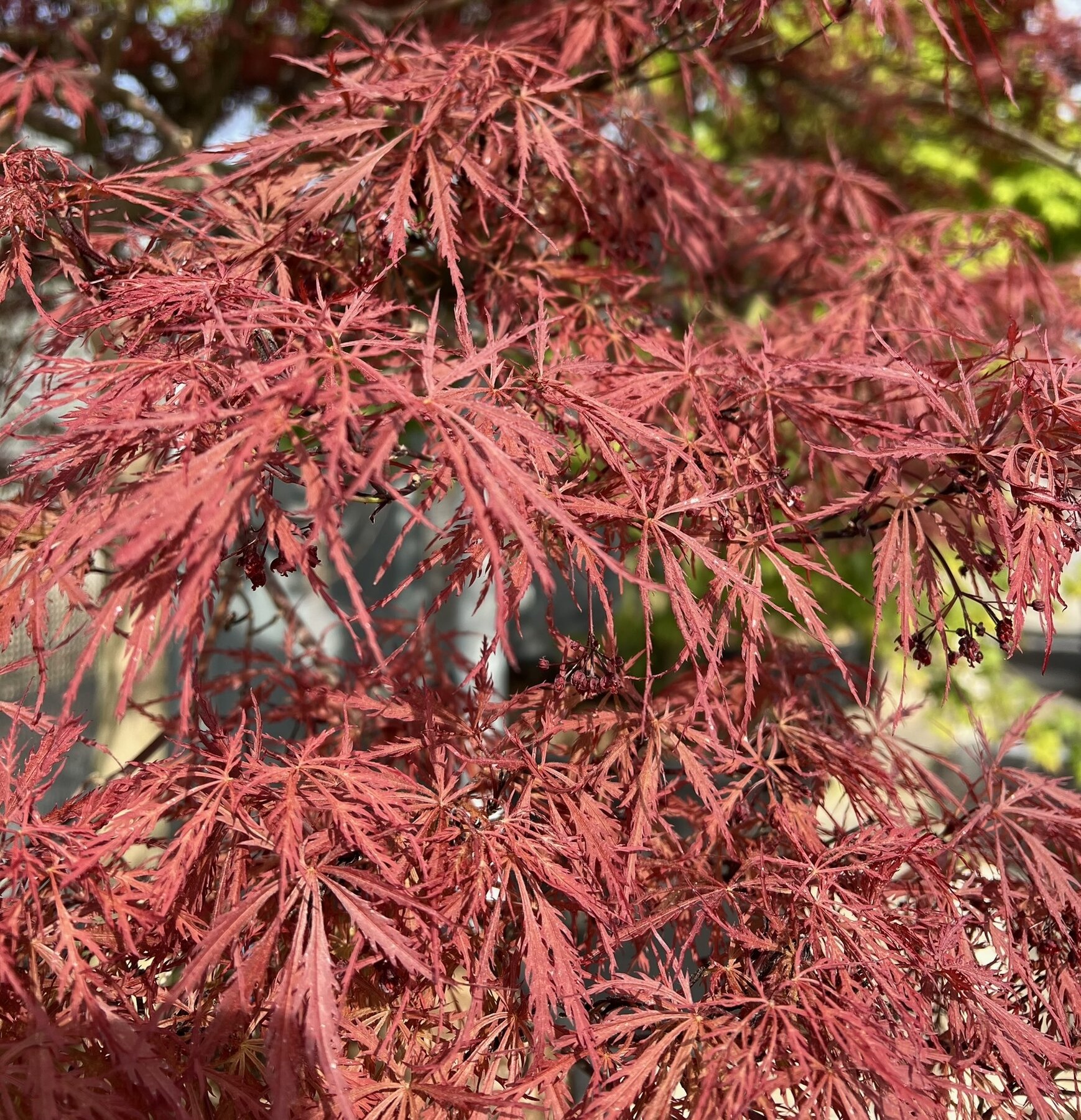 Arbusto a foglia caduca appartenente alla famiglia delle Aceraceae. Apprezzato per la sua chioma ad ombrello. Varietà robusta nonostante la finezza dei suoi ramoscelli dalla forma pendula. Spettacolare pianta con foglie finemente frastagliate di un bel colore rosso scuro dalla primavera all'autunno. In giardino e nelle aiuole può creare isole di maestosità cromatica. Ama il terreno fertile e ben drenato.
