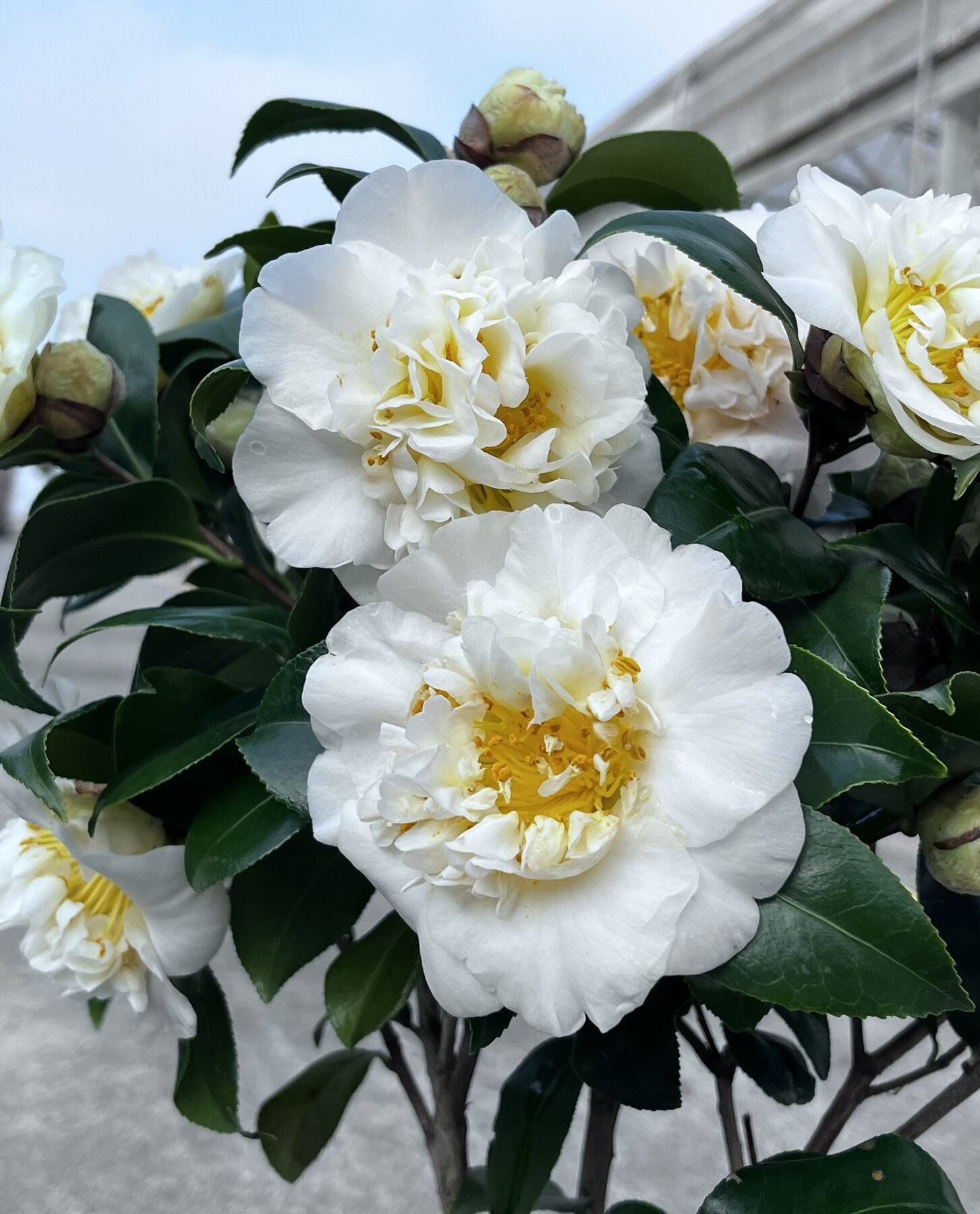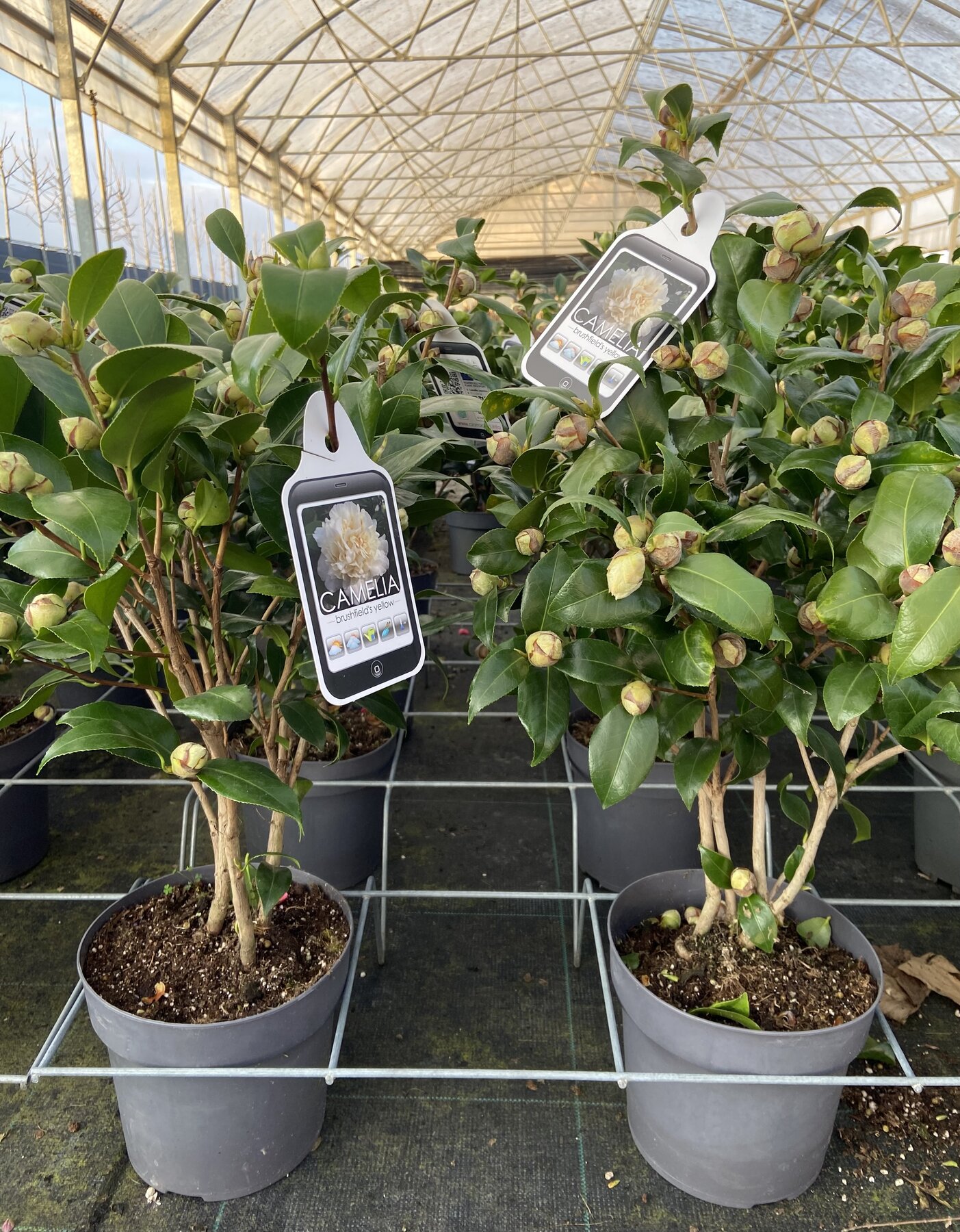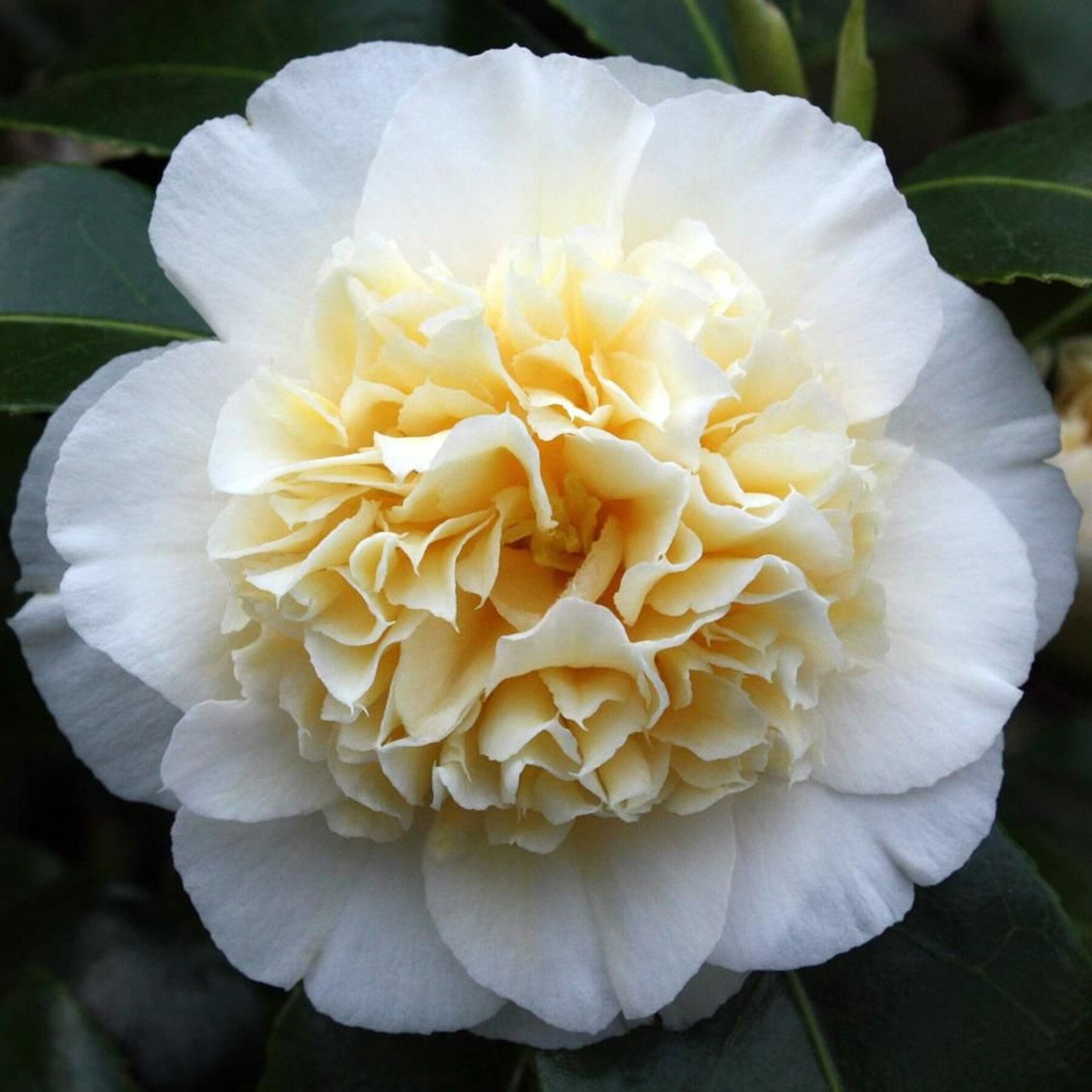Arbusto sempreverde della famiglia delle Theaceae. Portamento elegante, cespuglioso. Può raggiungere i 4 mt di altezza. Foglie ovali acuminate in punta, con lamina coriacea, lucide e di colore verde scuro. Da febbraio a maggio si copre di grandi fiori doppi embricati, perfetti, di colore bianco crema. Predilige un terreno acido e fertile.