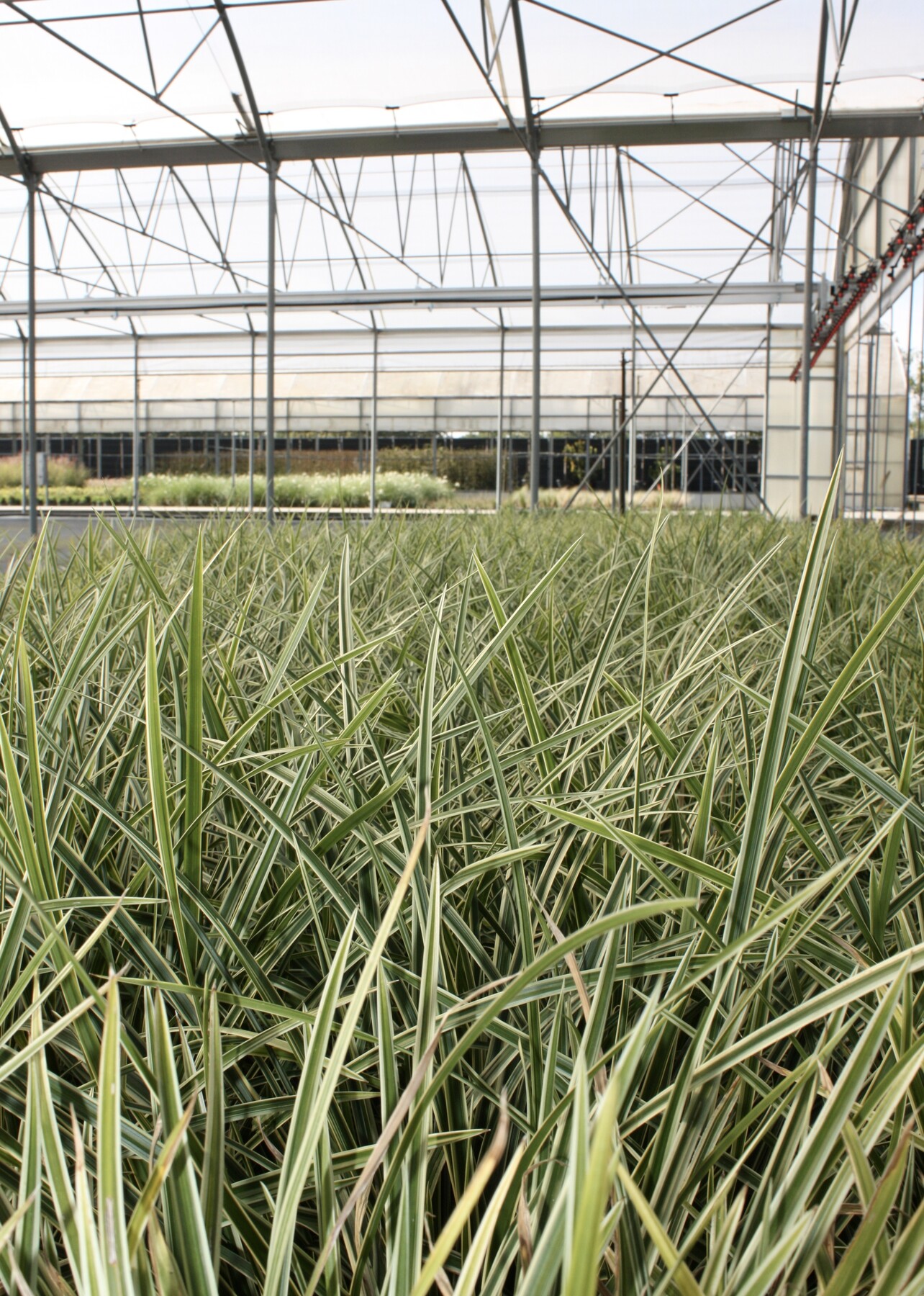 Pianta erbacea sempreverde appartenente alla famiglia delle Ciperaceae. Portamento cespuglioso, compatto e ricadente con densi ciuffi eleganti, con effetto 'fontana'. Raggiunge i 40/50 cm di altezza. Fogliame, molto ornamentale, coriaceo, nastriforme, arcuato, verde variegato bianco. Infiorescenza color marrone in primavera. Predilige un terreno fertile e ben drenato.