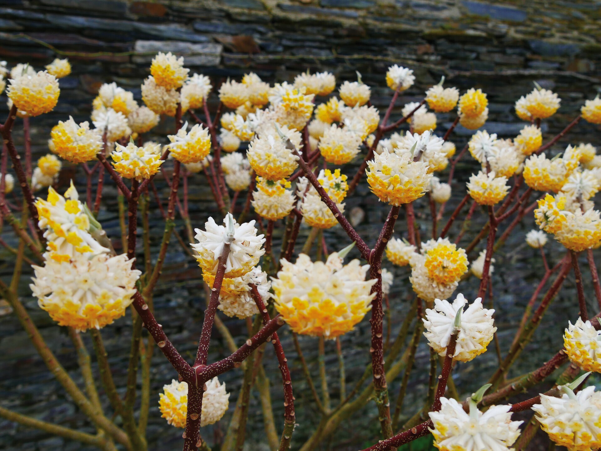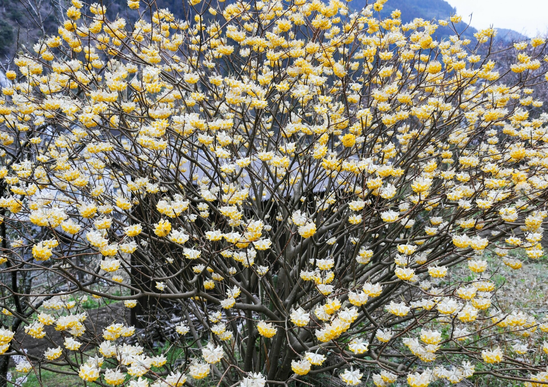 Arbusto a foglia caduca appartenente alla famiglia delle Thymelaeaceae. Portamento cespuglioso ed ampio. Maggior fascino nei mesi invernali dopo che le grosse foglie verdi scuro oblunghe hanno lasciato il posto ai fiori. La fioritura avviene infatti sui rami spogli, tanti pon pon colorati di bianco, giallo o arancio a seconda della specie. Terreno fertile, ben drenato.