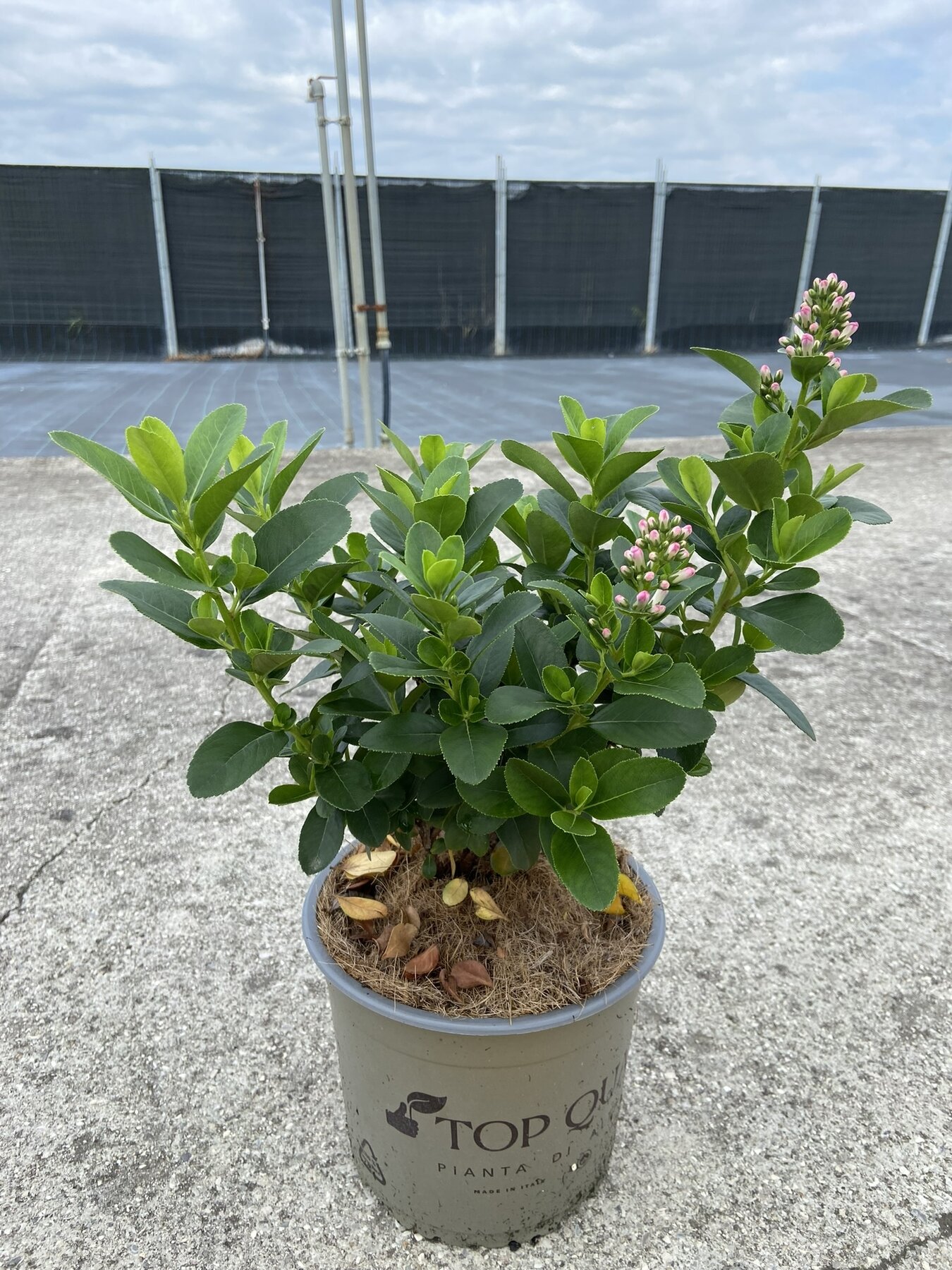 Arbusto sempreverde che appartiene alla famiglia delle Escalloniaceae. Portamento rotondeggiante che raggiunge a maturità i 100 cm di altezza. Fogliame verde scuro lucido. Da agosto ad ottobre produce numerosi fiori di color rosa sfumato di bianco, dal profumo delicato. Ideale per terrazze, vasi e fioriere. Predilige un terreno fertile e ben drenato.