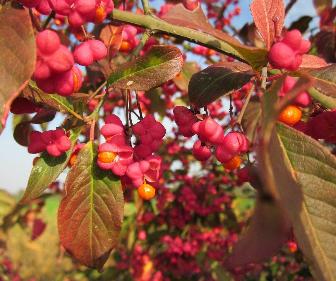 Arbusto sempreverde appartenente alla famiglia delle Celastraceae. Portamento eretto. Può raggiungere i 3 mt di altezza. Foglie ovali e crenate, di colore verde scuro che in autunno sfumano di rosso. In primavera produce piccoli fiori bianco-verdi, seguiti in autunno da mazzetti di frutti rosa. Ideale per macchie, siepi e bordure. Si adatta a qualsiasi terreno meglio fertile.