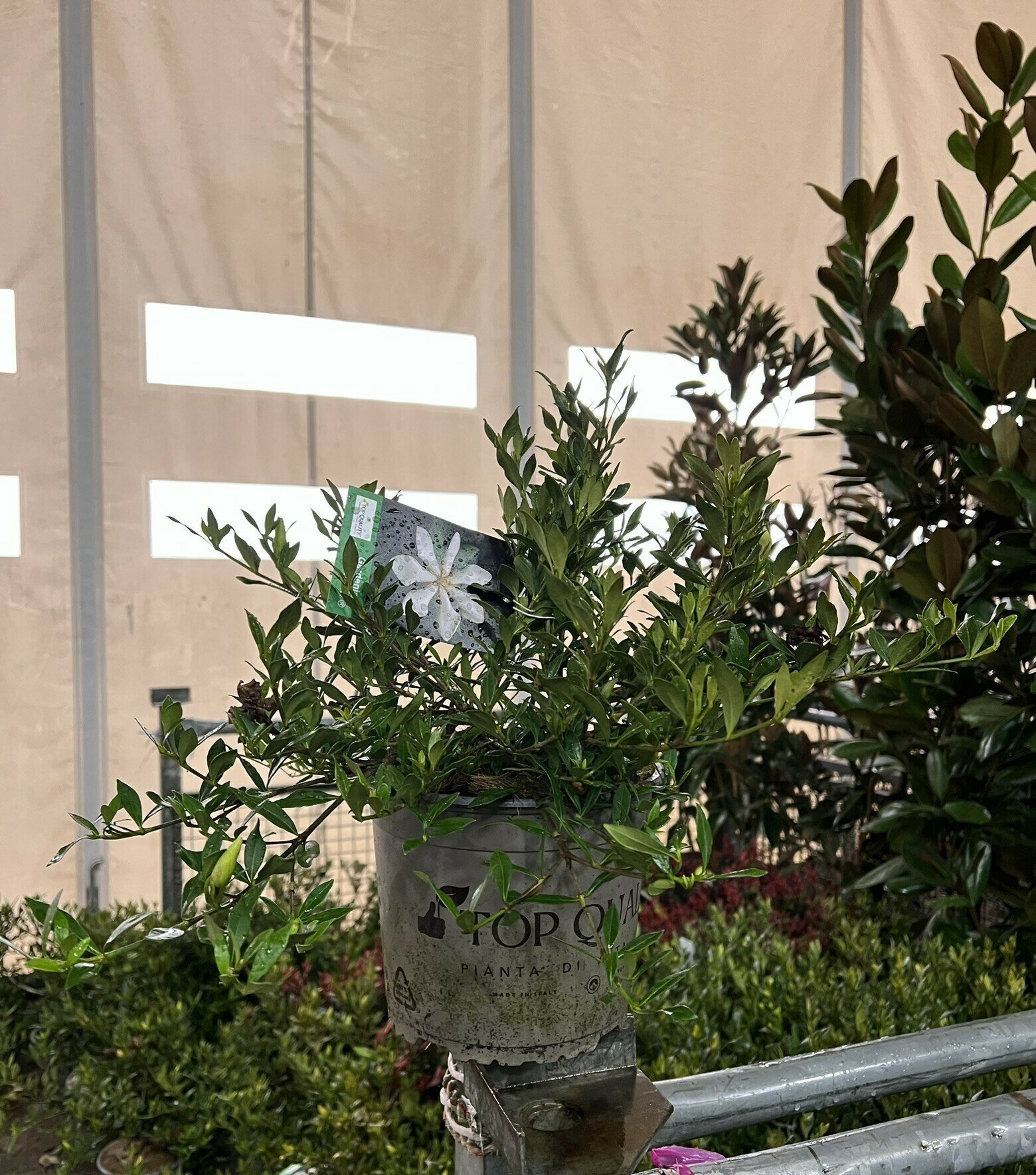 Arbusto sempreverde appartenente alla famiglia delle Rubiaceae. Portamento compatto. Raggiunge i 50 cm di altezza. Foglie lucide, a forma di lancia, verde scuro. Fiori semplici bianchi intensamente profumati da giugno a settembre. Ideale per viali e aiuole. Predilige un terreno fertile e ben drenato.