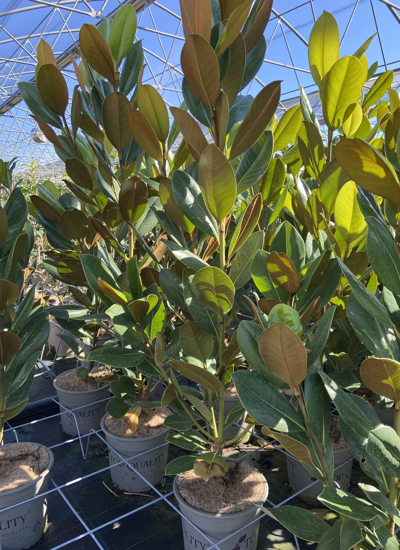 Arbusto sempreverde appartenente alla famiglia delle Magnoliaceae. Portamento eretto, chioma fastigiata. Raggiunge i 6 mt di altezza. Foglie verde luminoso, lucide, coriacee, di notevoli dimensioni. Fiori assai profumati di limone, molto grandi tra il bianco ed il giallo. Frutti eretti simile ad una pigna conica. Predilige terreno acido, fertile e ben drenato.
