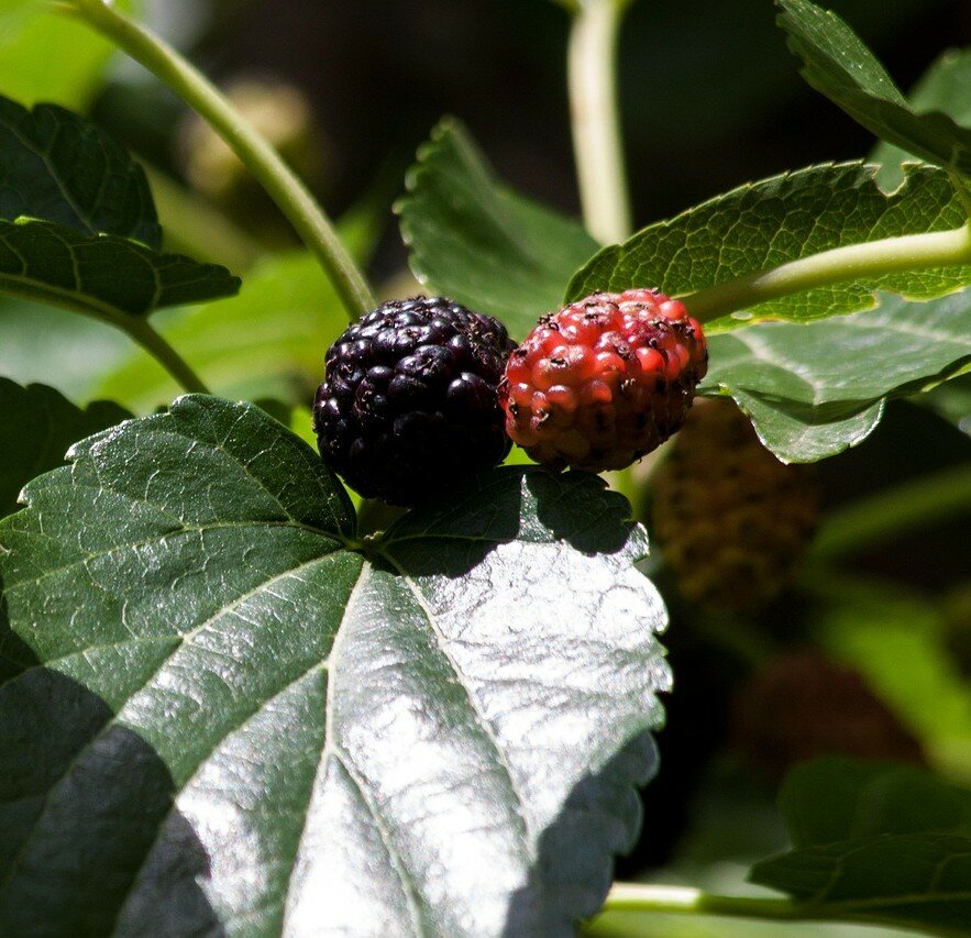 Albero a foglia caduca appartenente alla famiglia delle Moraceae. Portamento eretto con chioma arrotondata e rami ricadenti al terreno. Raggiunge i 4 mt di altezza. Foglie verde scuro lucido arrotondate. Fiori in estate color bianco. Frutti medi, neri piuttosto dolci e aromatici, tra luglio ed agosto. Terreno moderatamente fertile e ben drenato.