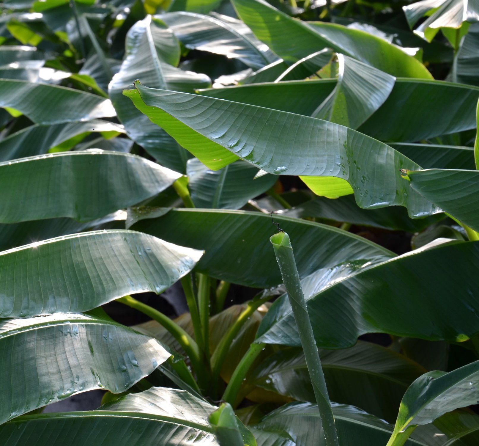 Arbusto a foglia caduca appartenente alla famiglia delle Musaceae. Portamento eretto con rizomi polliniferi, per cui da una singola pianta si forma rapidamente un gruppo di più esemplari. Raggiunge i 2,5-3 mt di altezza. Foglie lamine molto grandi verde chiaro. Grossa infiorescenza con brattee di colore vivace. Frutti giallo-verdastri (non commestibili). Maturazione a novembre. Terreno fertile.