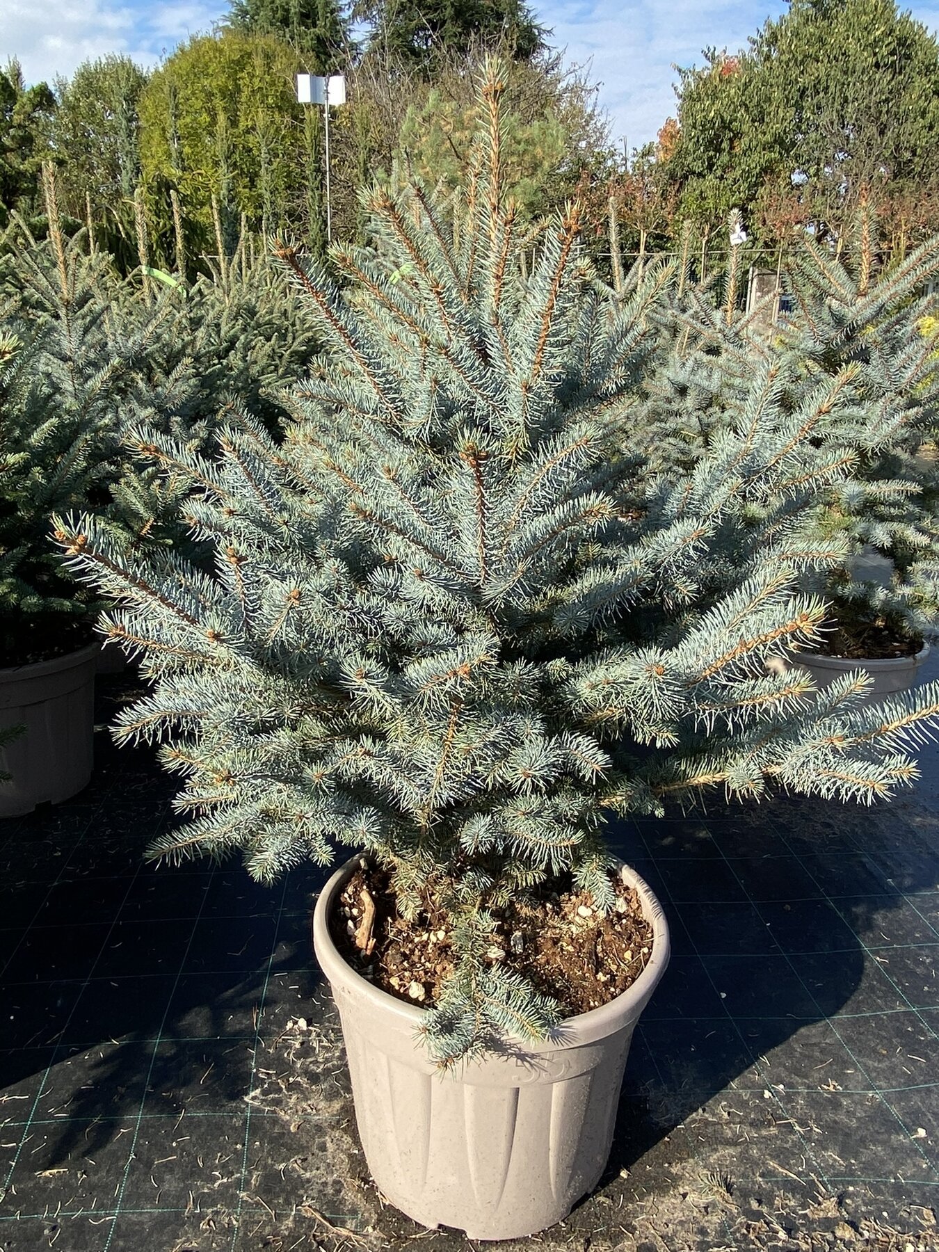 Conifera sempreverde appartenente alla famiglia delle Pinaceae. Portamento arrotondato, denso, sferico, leggermente conico. Crescita lenta. Raggiunge i 3 mt di altezza. Foglie aghiformi, corte, appuntite di un meraviglioso blu ghiaccio. Ideale per giardini rocciosi o come pianta isolata. Predilige un terreno fertile e ben drenato.