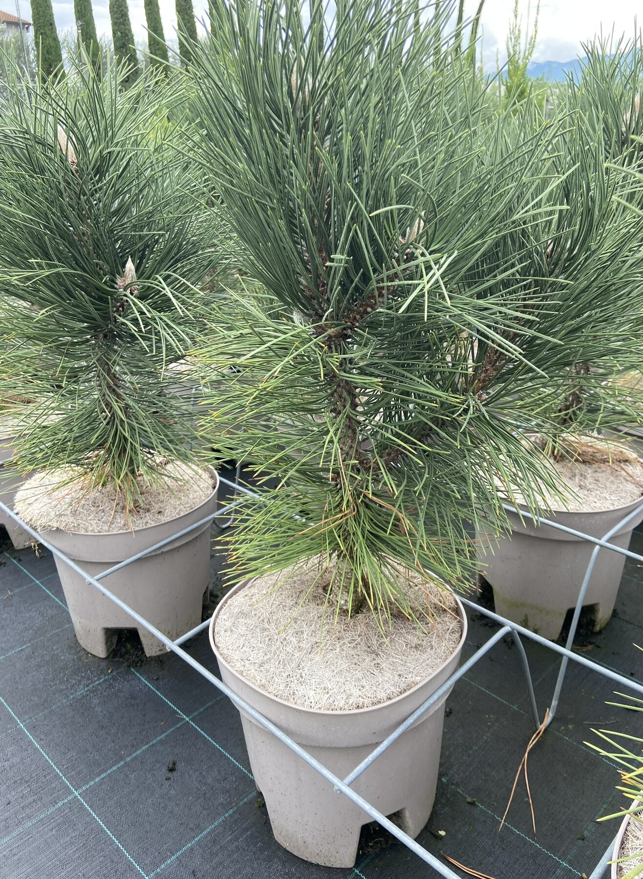 Conifera sempreverde appartenente alla famiglia delle Pinaceae. Portamento espanso e a crescita lenta. Raggiunge i 4 mt di altezza. Foglie aghiformi con steli duri e appuntiti, riuniti in fasci e di colore verde scuro. Ideale per giardini rocciosi. Predilige un terreno ben drenato.
