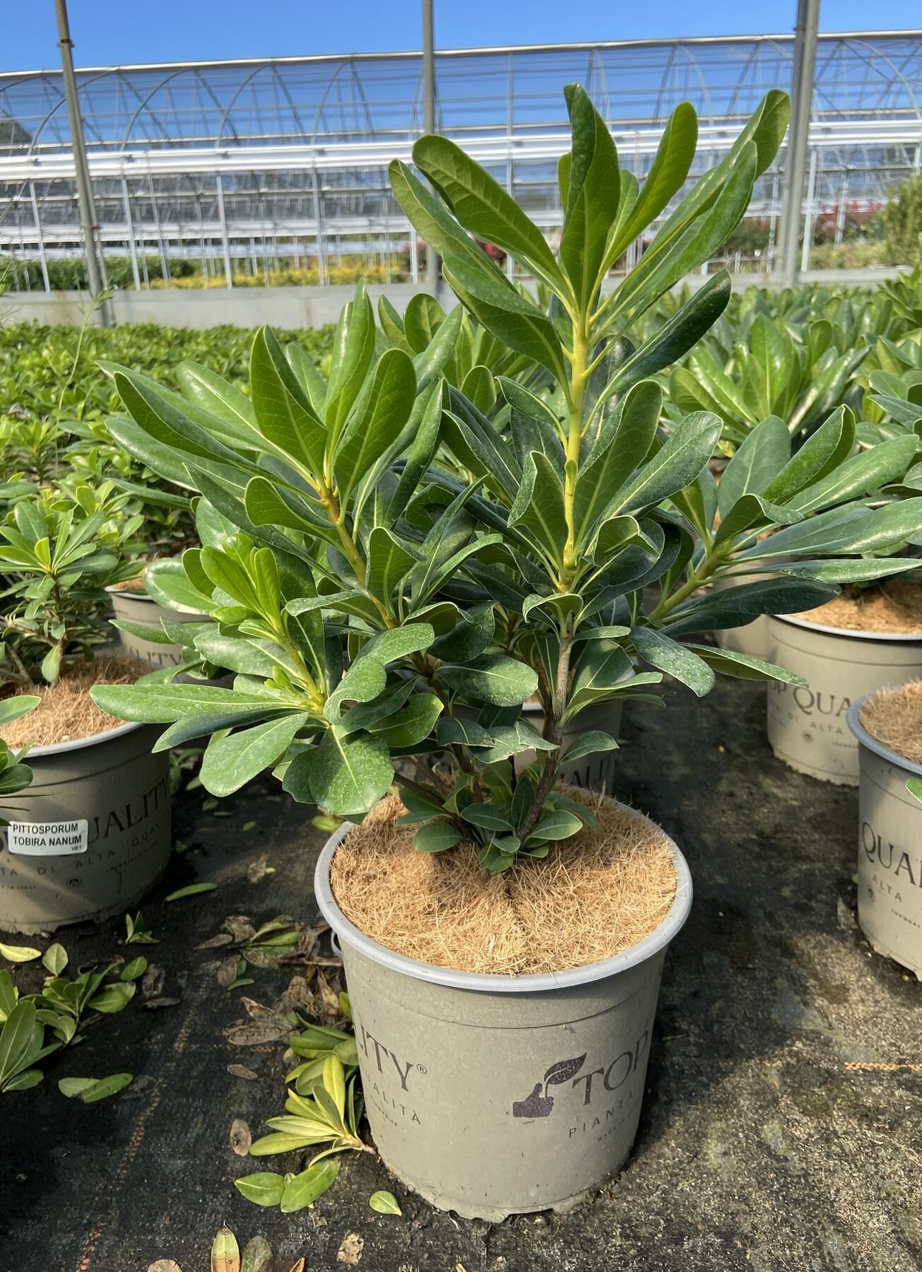 Arbusto sempreverde appartenente alla famiglia delle Pittosporaceae. Portamento eretto, compatto a lenta crescita. Raggiunge i 3 mt di altezza. Foglie spatolate, di colore verde scuro con una vistosa venatura chiara al centro. Fiori piccoli carnosi di colore bianco che divengono successivamente crema, ma sempre molto profumati. Predilige un terreno fertile e ben drenato.