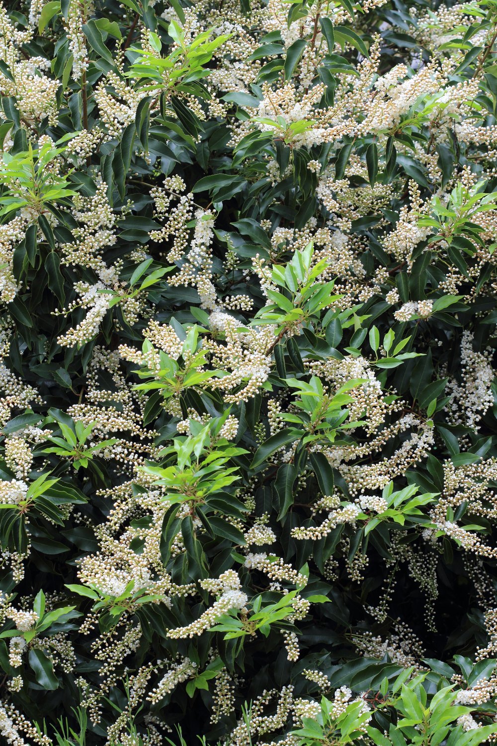 Arbusto sempreverde appartenente alla famiglia delle Rosaceae. Portamento eretto, cespuglioso, ramificato. Raggiunge i 6 mt di altezza. Foglie piccole, strette, verde scuro dai bordi dentati. Fiori bianchi profumati in primavera, piccioli rossi delle foglie e giovani rami rossi. Dai molteplici utilizzi. Predilige un terreno fertile e ben drenato.