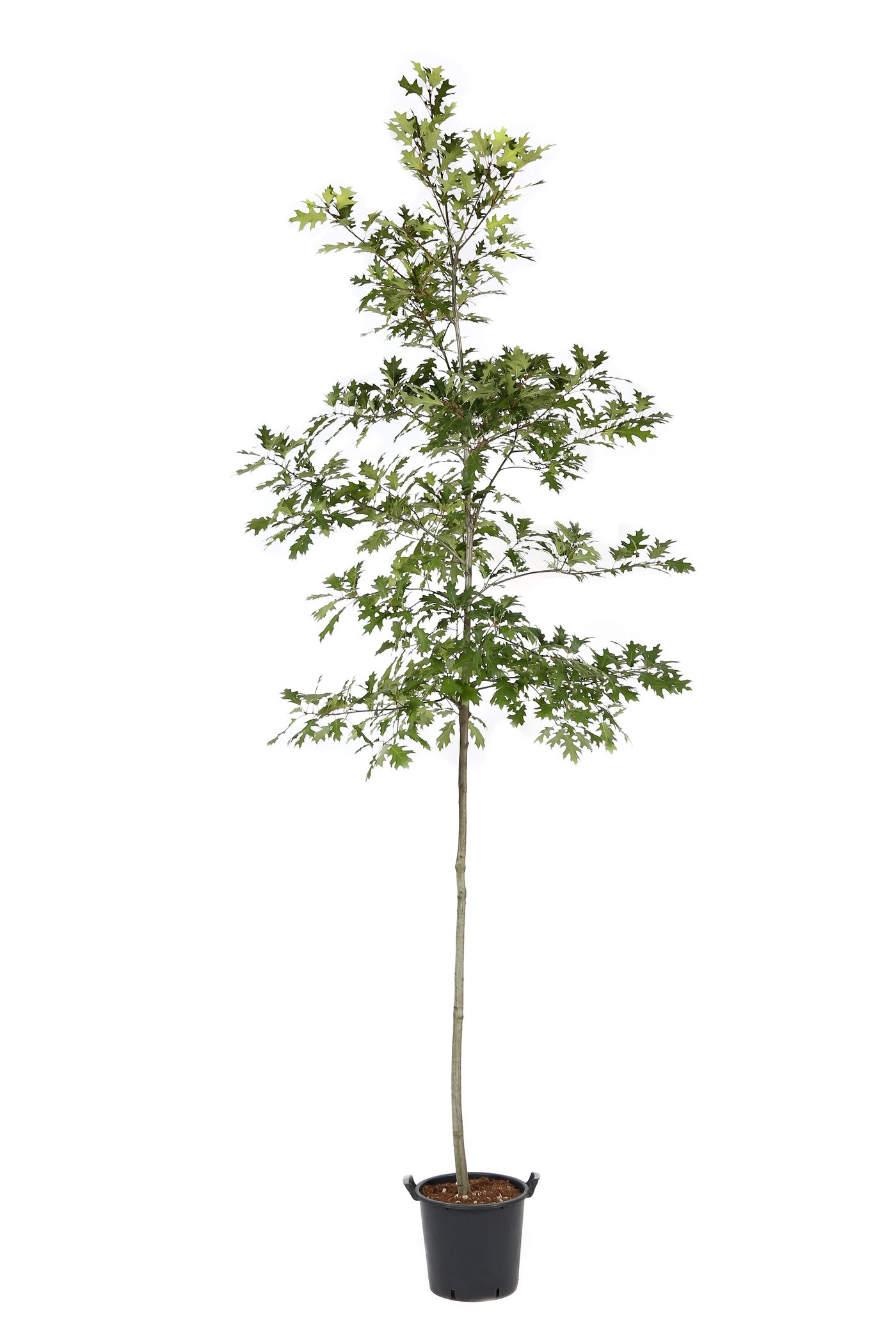 Albero a foglia caduca appartenente alla famiglia delle Fagaceae. Portamento maestoso, ad alberello con tronco spoglio alto 200/220 cm e chioma arrotondata. Rapida crescita. Raggiunge i 15 mt di altezza. Foglie lobate, larghe verde scuro che in autunno diventano rosso scarlatto. Produce ghiande di colore grigio argentato. Terreno ben drenato.