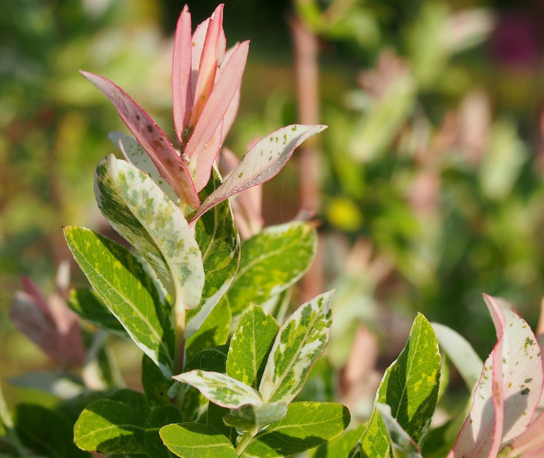 Albero a foglia caduca della famiglia delle Salicaceae. Portamento semiricadente, con chioma espansa ricadente. Crescita rapida. Raggiunge i 2 mt di altezza. Foglie verdi alla nascita, in seguito ampiamente variegate di crema, apici rosa, la variegatura in un secondo momento diviene anch'essa rosata. Infiorescenza a grappolo in primavera. Terreno umido e fertile.