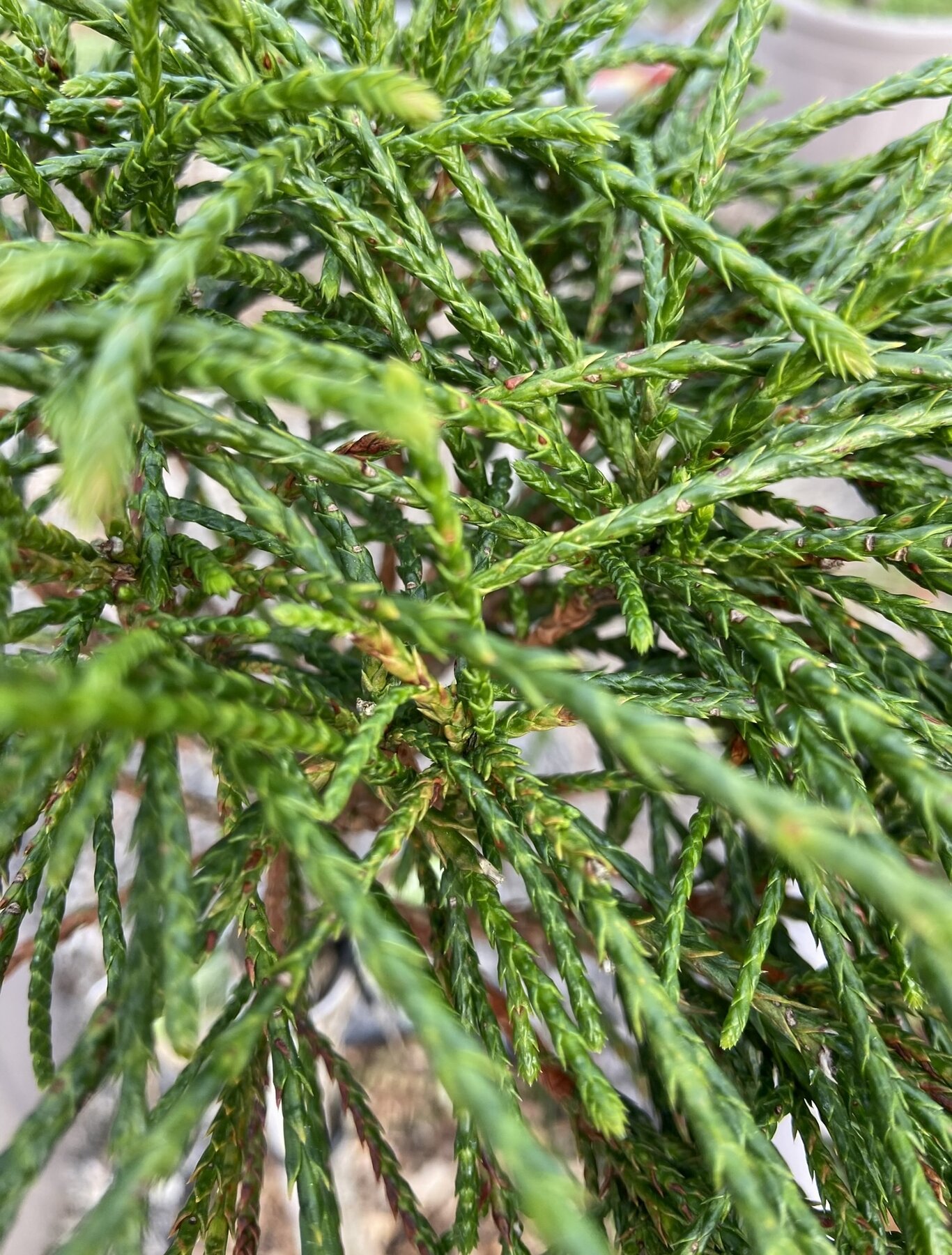 Conifera sempreverde appartenente alla famiglia delle Cupressaceae. Portamento nano e arrotondato. Crescita lenta. Raggiunge i 150 cm di altezza. Caratterizzata da rami filiformi con foglie squamiformi, di colore verde lucido che virano al bronzo in inverno. Resistente al freddo e alla siccità. Predilige un terreno fertile e ben drenato.